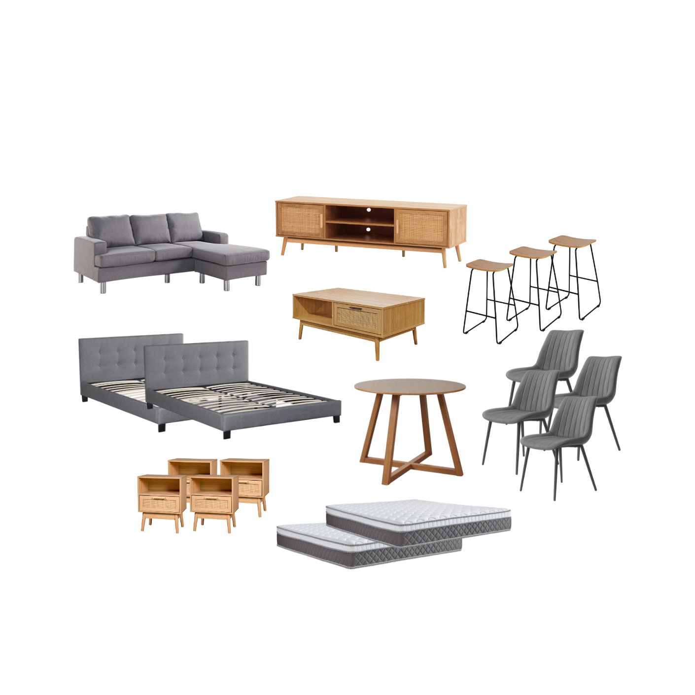 The Rattan Villa Package is your complete solution for furnishing your new two-bedroom home. Crafted from high-quality materials, this elegant and contemporary furniture set is a perfect addition to your interior design. Built to last, it combines modern style and durability for long-lasting appeal.