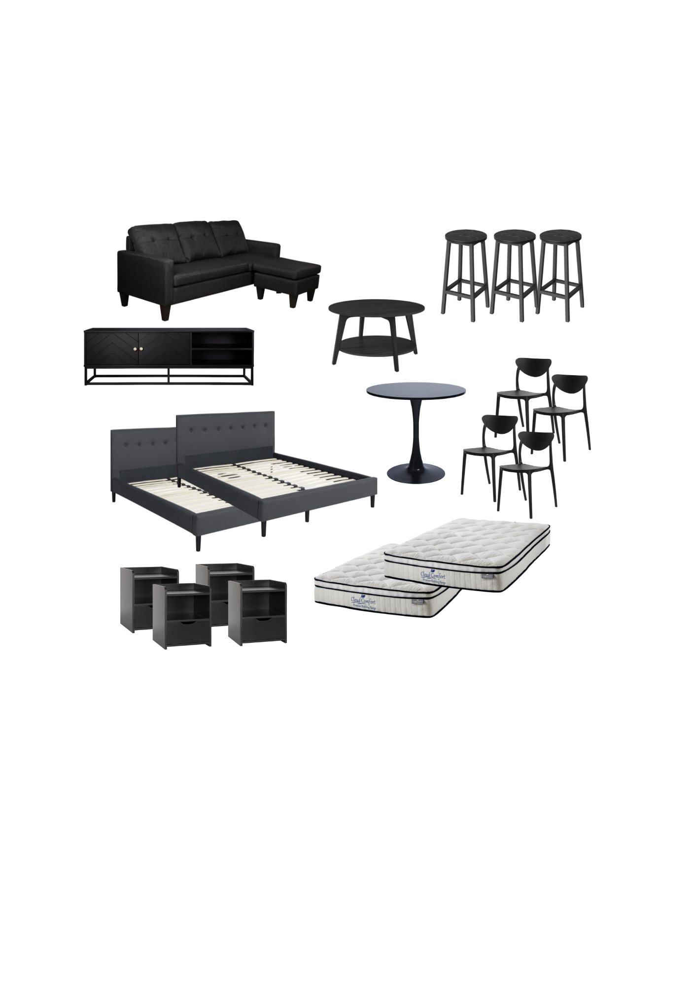 The Dark Villa Package is your complete solution for furnishing your new two-bedroom home. Crafted from high-quality materials, this elegant and contemporary furniture set is a perfect addition to your interior design. Built to last, it combines modern style and durability for long-lasting appeal.