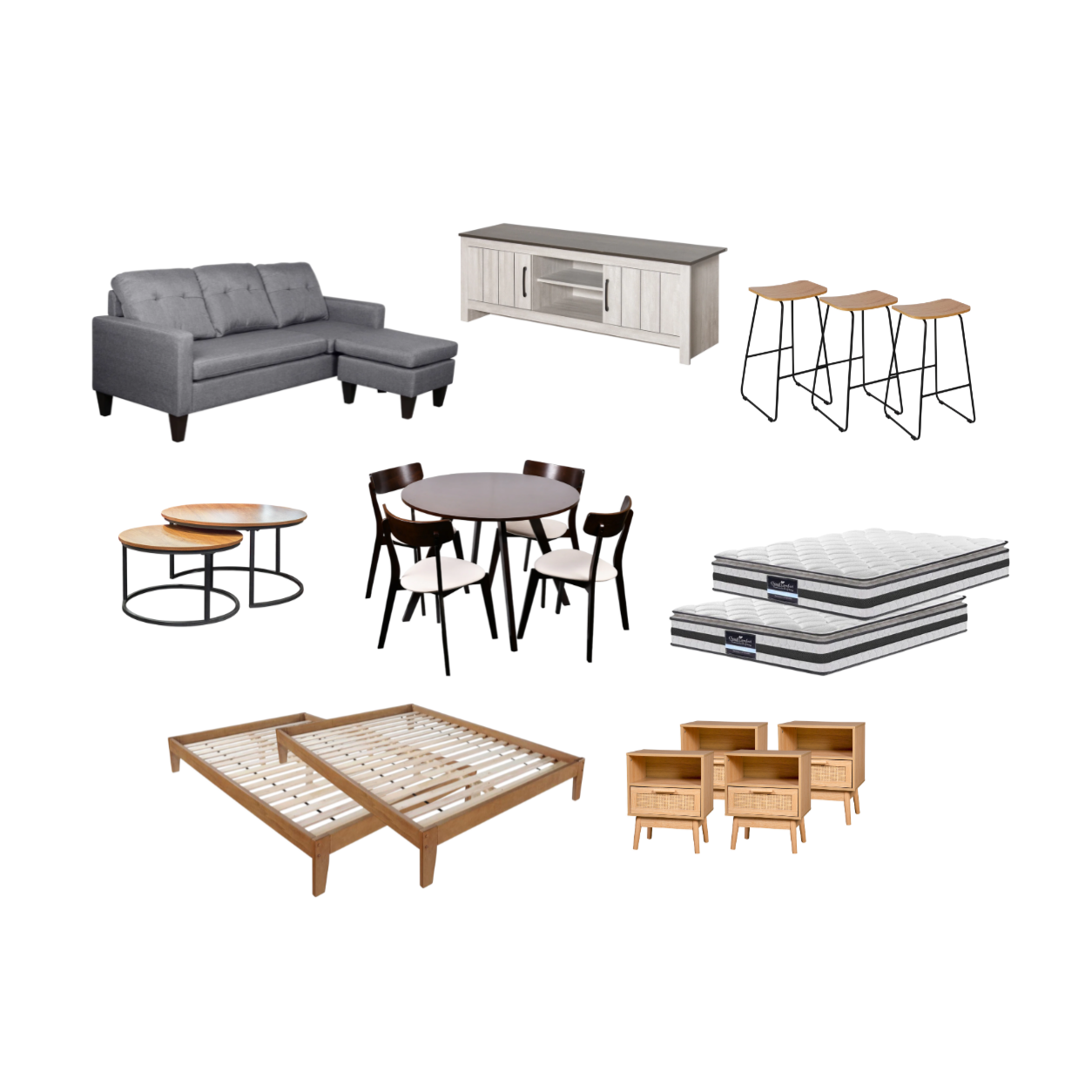The Wood Villa Package is your complete solution for furnishing your new two-bedroom home. Crafted from high-quality materials, this elegant and contemporary furniture set is a perfect addition to your interior design. Built to last, it combines modern style and durability for long-lasting appeal.