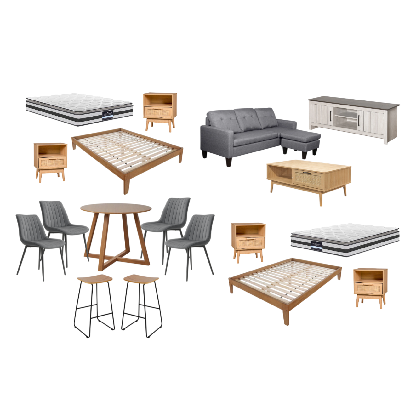 The Rattan Villa Package is your complete solution for furnishing your new two-bedroom home. Crafted from high-quality materials, this elegant and contemporary furniture set is a perfect addition to your interior design. Built to last, it combines modern style and durability for long-lasting appeal.